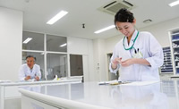 薬剤師の業務内容と責任を理解し、地域医療を含むチーム医療に参加できるようになるために、調剤ならびに製剤・服薬説明などの薬剤師業務に関する基本的知識、技能、態度を修得します。このような臨床実習は、薬剤師養成教育の最終段階として行われるもので、医療現場の病院・薬局において実施します。